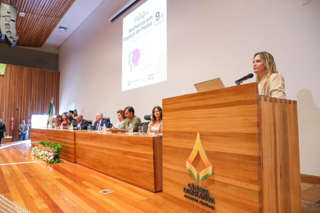Em seu discurso na palestra Mulheres em Espaço de Poder, na CLDF, Celina Leão lembrou da atuação na Câmara Federal, onde trabalhou na aprovação de 200 leis direcionadas às mulheres, sendo 84 delas sancionadas.