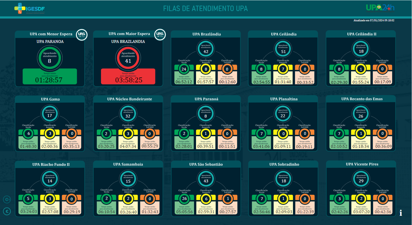 O painel fila das Upas já está disponível para toda a população em todas as Unidades de Pronto Atendimento ou pelo site do Instituto através do link https://indicadores.igesdf.org.br/filasupa/.