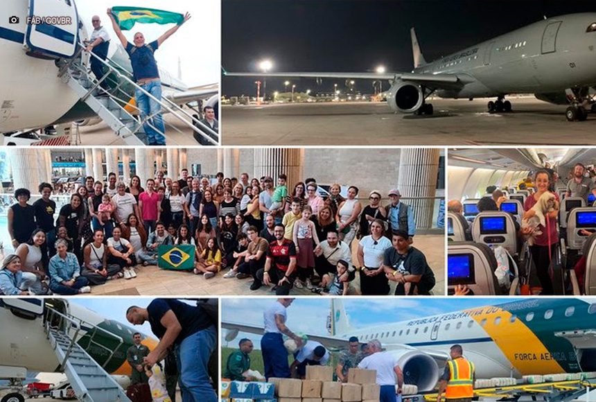 Eram 19h12 de 10 de outubro, no horário local de Tel Aviv, quando uma aeronave KC-30, um Airbus A330 200 da Força Aérea Brasileira (FAB), decolou da capital israelense levando 211 brasileiros. Aquele voo, que pousou por volta das 4h10 de 11 de outubro em Brasília, marcou a primeira missão da Operação Voltando em Paz. “Saímos de Tel Aviv debaixo de mísseis e chegamos ao Brasil com aplausos. A nossa esperança é olhar para o céu e saber que não cairão bombas”, disse, aliviado, o escritor e empresário brasiliense Fabrício Ramon Lopes, que fez parte do primeiro voo da Operação Voltando em Paz a pousar no Brasil.