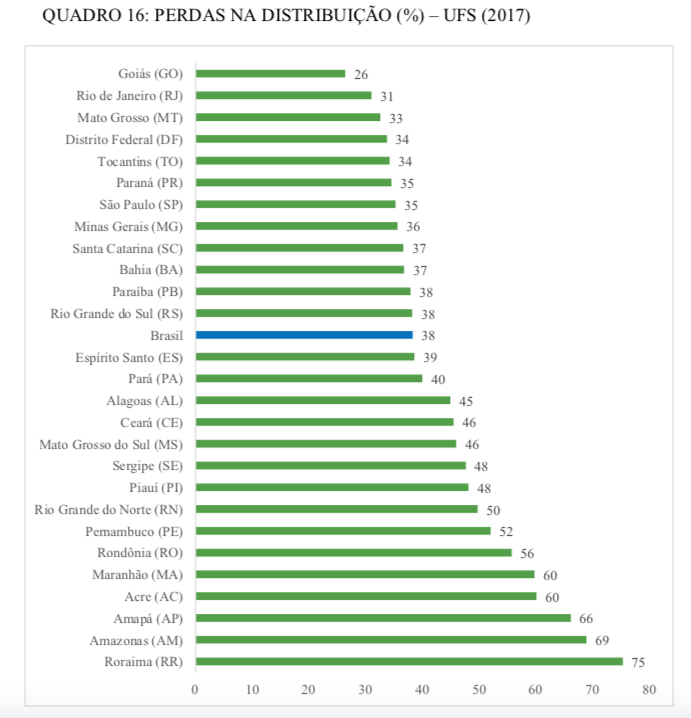 Segundo o estudo, na região Norte, o volume perdido é mais crítico e chega a 55,14%. Roraima aponta o número mais expressivo. A cada 100 litros captados pela companhia de abastecimento de água, apenas 25 chegam aos usuários. No Amazonas, o percentual de perda chega aos 69%, seguido do Amapá com 66%. Com menor nível de desperdício está a Centro-Oeste, com 34,4%, com destaque para Goiás com perda de 26%.