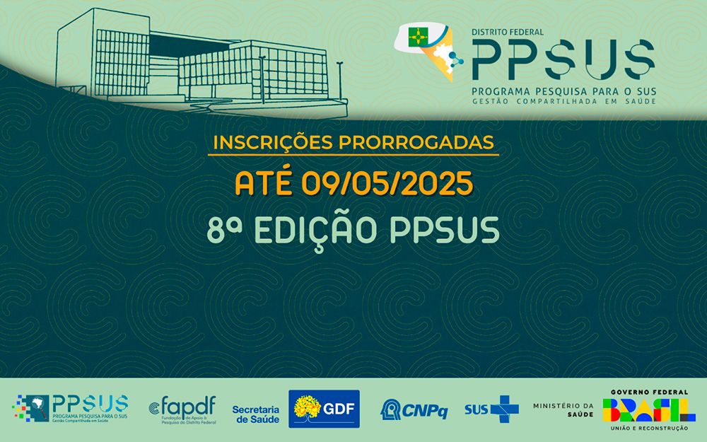 A Fundação de Apoio à Pesquisa do Distrito Federal (FAPDF) prorrogou o prazo de inscrições da 8ª edição da Chamada Pública do Programa Pesquisa para o SUS – Gestão Compartilhada em Saúde (PPSUS). Agora, pesquisadores e pesquisadoras interessados têm até o dia 9 de maio para submeter propostas. O edital é uma oportunidade estratégica para fomentar estudos voltados ao fortalecimento do Sistema Único de Saúde (SUS) no contexto do Distrito Federal, com foco em inovação, equidade e gestão em saúde pública.