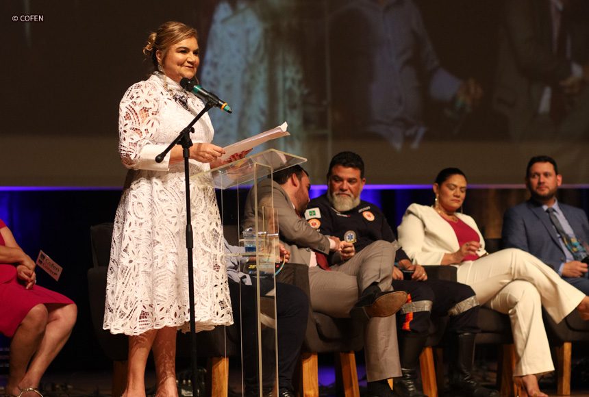 Betânia Santos, presidente do Cofen e natural de João Pessoa, relembrou a liderança dos Conselhos de Enfermagem na luta para que o sonho do piso fosse efetivado em forma de lei e destacou o protagonismo político que a profissão vem assumindo. “Demos os primeiros passos vitoriosos na representação política da Enfermagem nos parlamentos e com orgulho, elegemos dois representantes no Congresso Nacional, ambos presidentes de Conselhos Regionais, além de deputados estaduais. Em 2024, com eleições municipais em todo país, temos que estimular nossos profissionais a se candidatarem e conquistarem mais espaços políticos para que possamos ser ouvidos e atendidos em nossas reivindicações”, disse.