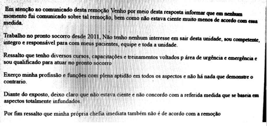 Na decisão, o juiz Enilton Alves Fernandes ponderou que a posição de Diego Sampaio, sobre a transferência “deveria ter sido levada em consideração, já que, a princípio, a motivação (da remoção, pela chefia) teria como finalidade a preservação da saúde do servidor”. Porém, conforme adiantado, em primeira mão, por Política Distrital (PD)(19/Jan), além de o enfermeiro negar ter algum tipo de doença, o profissional de saúde, também, deixou claro a falta de interesse de deixar de trabalhar no Pronto Socorro do HRT.