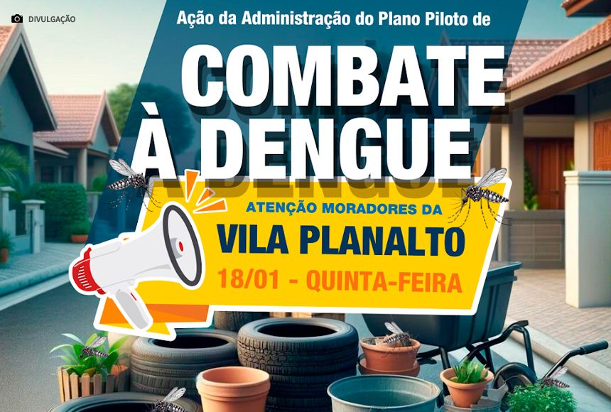 A Administração do Plano Piloto vai realizar diversas ações de combate à dengue pelo Plano Piloto e a primeira cidade a receber essas ações será a Vila Planalto. A ação é encabeçada pela Administração do Plano Piloto, com o apoio do programa GDF PRESENTE, Vigilância em Saúde, NOVACAP, SLU e Corpo de Bombeiros.