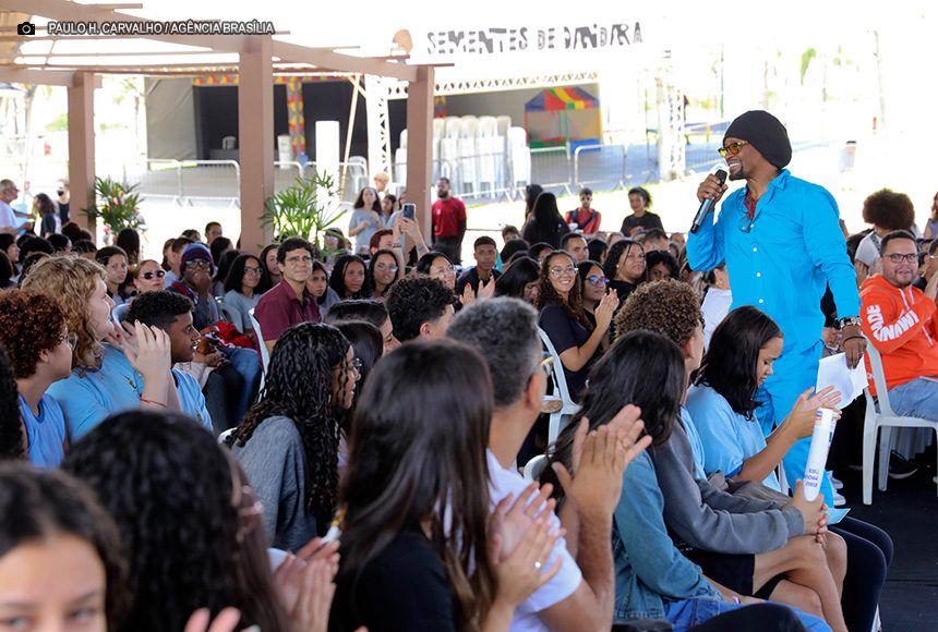 Estudantes da rede pública do DF participaram de palestra com o cantor Toni Garrido; programação da noite inclui Ellen Oléria, Marcelo Falcão e Nação Zumbi