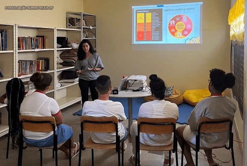 Dentre as ações da  Campanha “Agosto lilás” estão palestras  dentro do Sistema Socioeducativo , que serão oferecidas em diversas unidades socioeducativas em todo o mês de agosto.  “Mediação pedagógica sobre Violência nas relações de Namoro” será o tema abordado com ações que  dialogam com os jovens  sobre a temática, oferecendo  diálogo,  reflexão e  prevenção  à violência nas relações de namoro. O intuito é possibilitar que os/as jovens identifiquem e reconheçam sinais de um relacionamento abusivo e das diferentes formas de violência, percebam o que é a violência contra as mulheres na sociedade brasileira e seus aspectos culturais, bem como compreendam como lidar caso se encontrem nessa situação ou conheçam alguém que esteja.
