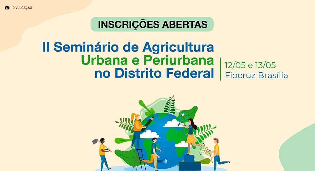 Estão abertas as inscrições para o II Seminário de Agricultura Urbana e Periurbana no Distrito Federal: vigilância em saúde e o desenvolvimento de ações intersetoriais de prevenção e mitigação dos impactos dos agrotóxicos na saúde e ambiente. O evento será realizado nos dias 12 e 13 de maio, das 8h às 17h30, no auditório externo da Fiocruz Brasília, localizado no Campus Universitário Darcy Ribeiro da Universidade de Brasília (UnB).