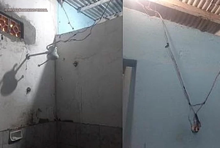 O sistema elétrico nunca foi trocado (mais de 28 anos de uso), um risco eminente de incêndio na casa que também tem risco de queda do telhado porque a madeira está consumida por cupins.