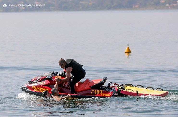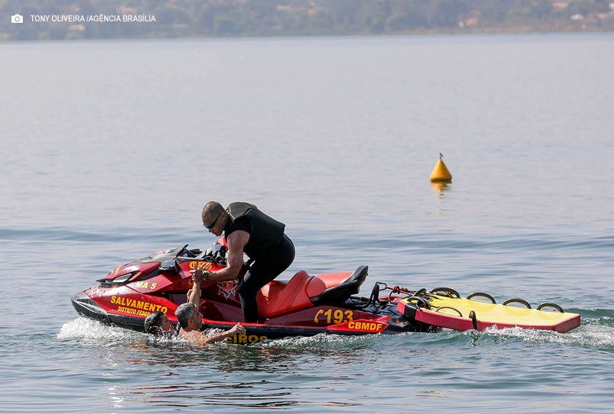 “É uma época complicada, que exige muita atenção da nossa equipe. Então, principalmente aos finais de semana, os mergulhadores e guarda-vidas do Corpo de Bombeiros ficam em alerta 100% em todos os nossos postos. Nós temos cinco postos de guarda-vidas espalhados pelo Lago Paranoá e mais dois postos de atendimento à emergência de mergulho”, explica o capitão Alan Valim, oficial do Grupamento de Busca e Salvamento do Corpo de Bombeiros Militar do Distrito Federal (CBMDF).