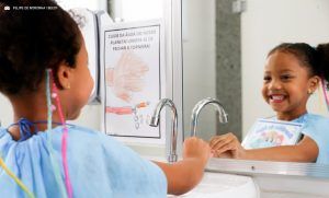 A guardiã Louise Lima dos Santos, de 4 anos, compartilhou o que aprendeu durante a semana e como tem aplicado esses ensinamentos na escola e em casa. “Eu escovo os dentes com a torneira fechada”, explicou a estudante.
