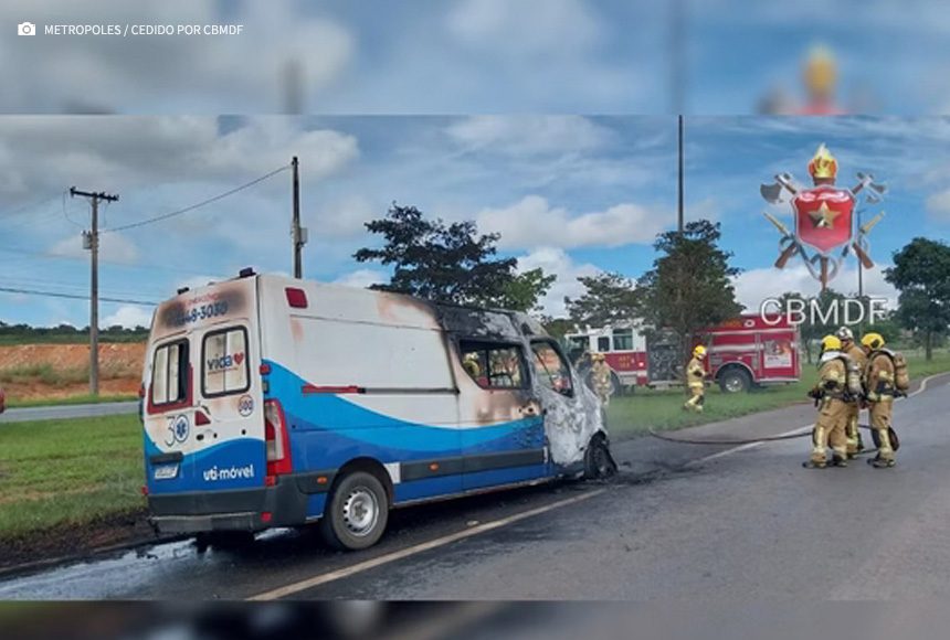 Uma ambulância da UTI Vida pegou fogo, na manhã desta segunda-feira (15/Abr), enquanto transitava na BR-020, nas proximidades do condomínio Império dos Nobres e de Sobradinho. Segundo o motorista, ao perceber o incêndio manobrou a viatura para o acostamento e saiu, sem ferimento, juntamente com um técnico em Enfermagem. Sem pacientes a bordou, após chegar ao local o Corpo de Bombeiros do DF (CMBDF) controlou o incêndio.