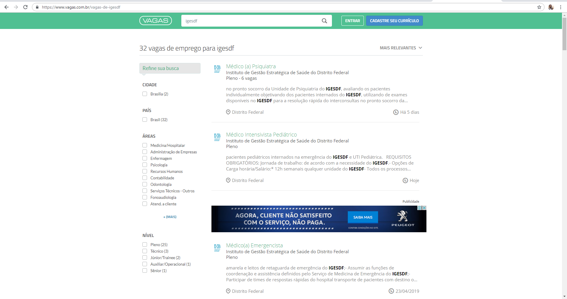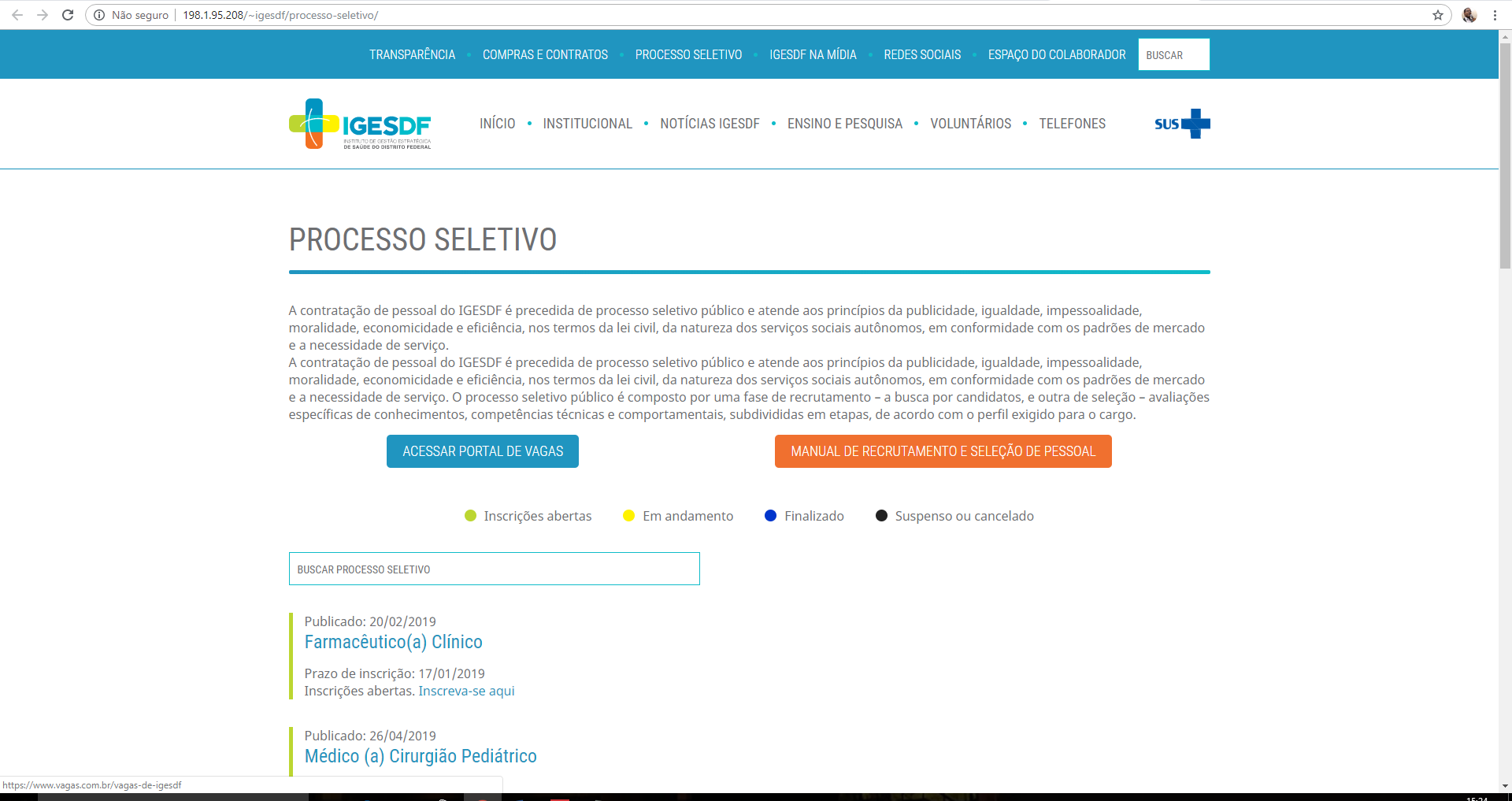 Outros membros do mesmo grupo, acostumados a consultar as vagas disponibilizadas pelo IGESDF, desde a época do IHBDF, diretamente no site do Vagas.com, também ficaram na dúvida sobre o local exato para realizar as inscrições.