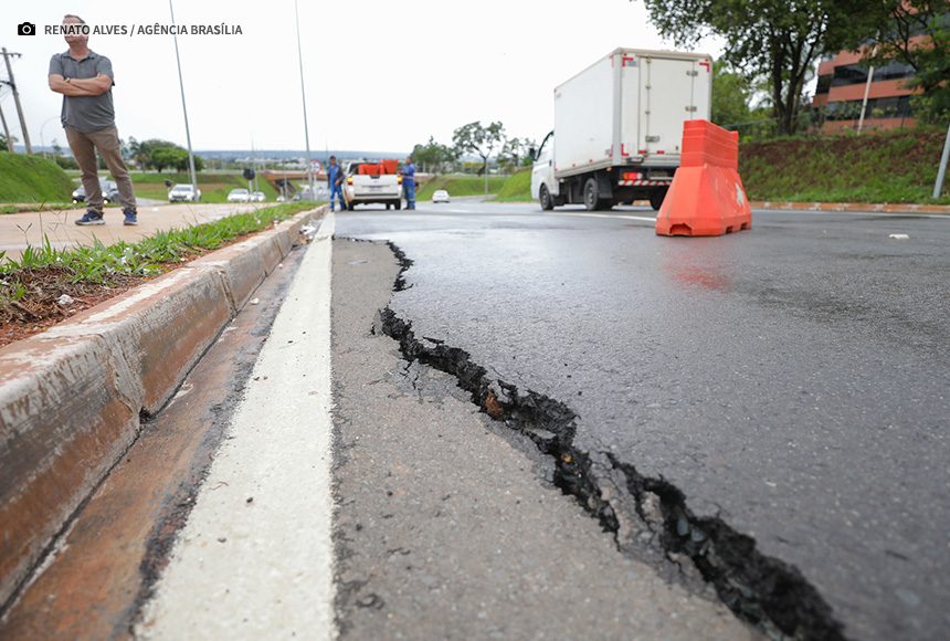 O GDF notificou, na última terça-feira (2/dez), o Consórcio Viaduto EPIG, responsável pela construção do complexo viário da Estrada Parque Indústrias Gráficas. Entregue em 21 de outubro do ano passado, um trecho da via apresentou rachadura, abaixo do elevado, na área que liga o setor Sudoeste ao Parque da Cidade. A Eterc Engenharia e Principal Construções, empresas que compõem o grupo, aguardam um recuo das intensas chuvas que atingem o DF para realizar os reparos necessários.