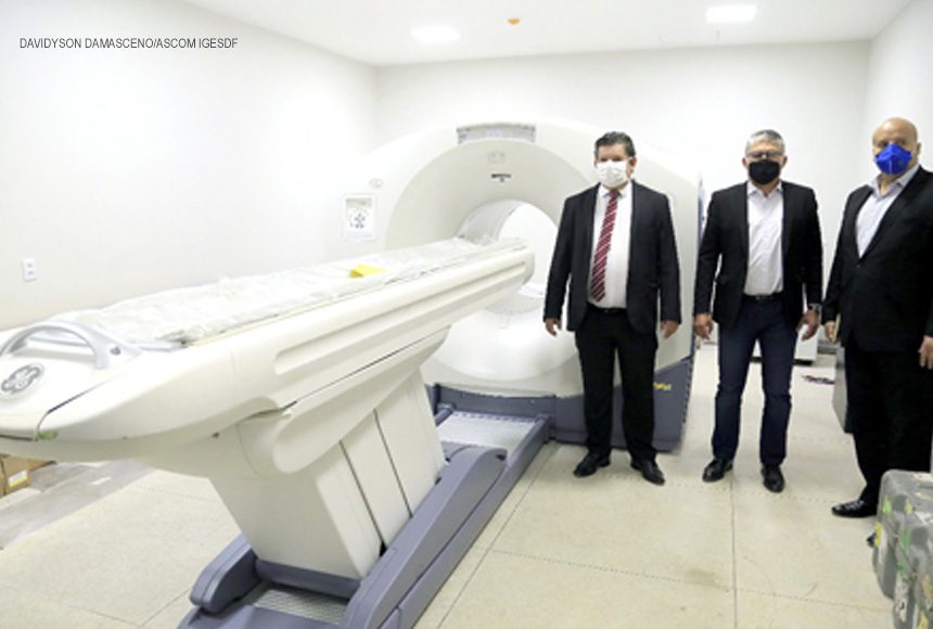 O aparelho que faz exame de imagem de alta definição para diagnóstico oncológico, PET-CT, começou a ser montado no Hospital de Base. Nesta segunda-feira (20), o diretor-presidente do Instituto de Gestão Estratégica de Saúde do DF (Iges-DF), Sergio Costa, recebeu o secretário de Saúde do DF, Francisco Araújo, para checar a instalação do equipamento, considerado um dos mais modernos para diagnosticar e acompanhar doenças com precisão, como o câncer.