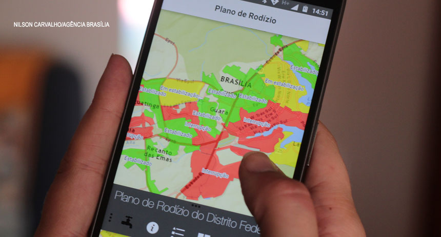 Na atualização de 31 de janeiro, o aplicativo Caesb Autoatendimento passou a oferecer a opção Plano de Rodízio. Por meio dessa ferramenta, que permite ao usuário acionar a empresa pública por meio de dispositivos móveis, como celulares e tablets, a Companhia de Saneamento Ambiental do Distrito Federal (Caesb) informa ao consumidor quando ele será atingido pelo racionamento de água.