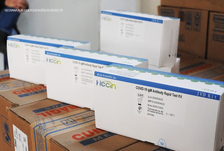 Os 300 mil kits de testes rápidos para detecção de anticorpos IGM de Covid-19 doados ao Governo do Distrito Federal estão liberados para uso. O material, recebido pela Secretaria de Economia, passou pela análise do Instituto Nacional de Controle de Qualidade em Saúde da Fundação Oswaldo Cruz (Fiocruz). No valor total de R$ 8,5 milhões, a doação partiu de um pedido do governador Ibaneis Rocha, que determinou à Secretaria de Economia a operacionalização do processo.