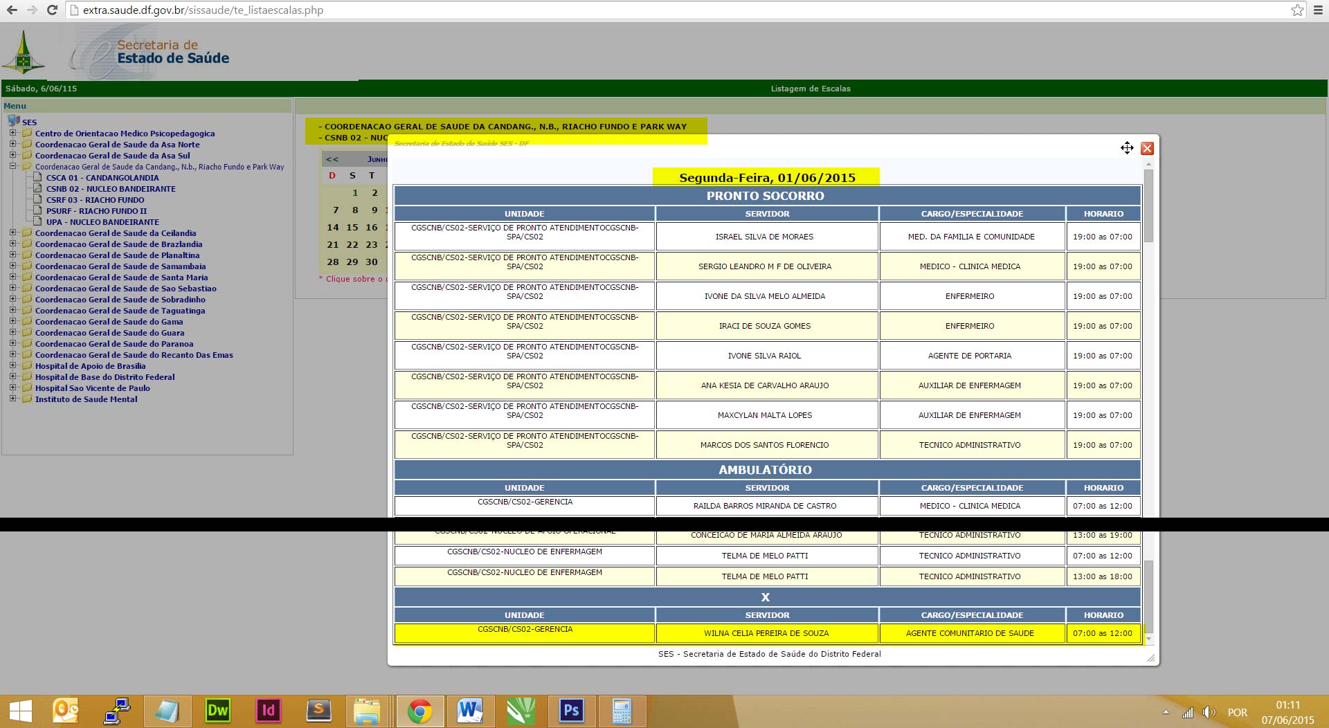 A pedido da denunciante, o Blog monitorou as escalas do mês de Junho e constatou, por meio do website da Secretaria de Estado de Saúde do DF (SES-DF), que disponibiliza as escalas dos servidores, a incidência do mesmo ‘problema’, por duas vezes ocasiões nos últimos quinze dias, nos dias 1º e 3 de Junho, respectivamente.