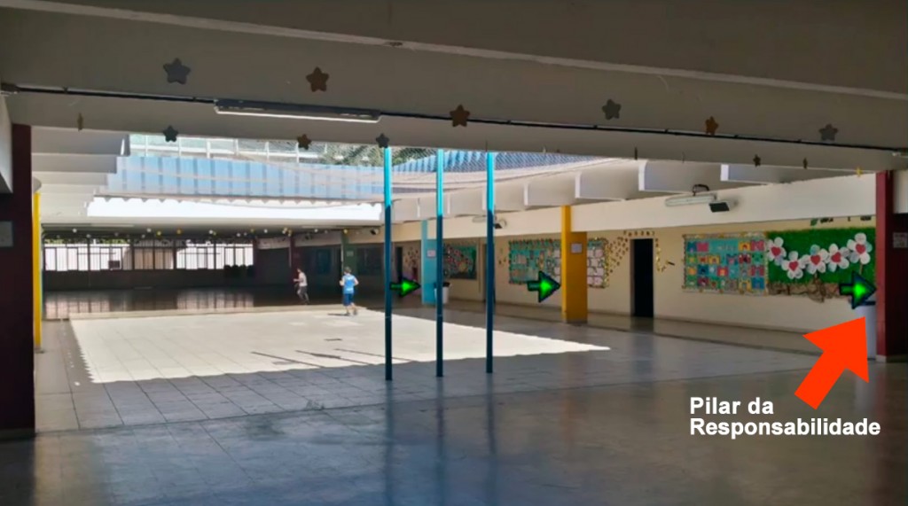 Ainda em nota, a Escola explica a aplicação do Pilar da Responsabilidade por eixos estruturantes e valores significativos, por meio de pilares [esse, parte, física e estrutural do prédio que dá sustentação à edificação predial da Escola]:
