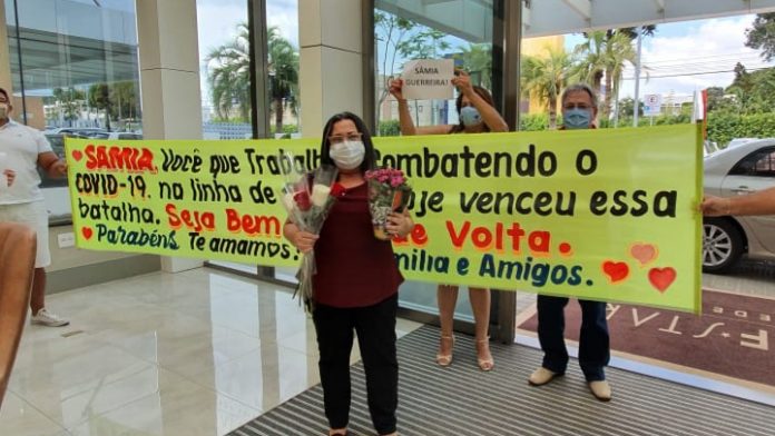 Após uma longa batalha pela vida, a técnica em enfermagem Sâmia Regina, de 57 anos, agora tem o que comemorar. Internada desde maio, a profissional da Secretaria de Saúde recebeu alta nesta quinta-feira (02), depois de lutar contra a Covid-19.