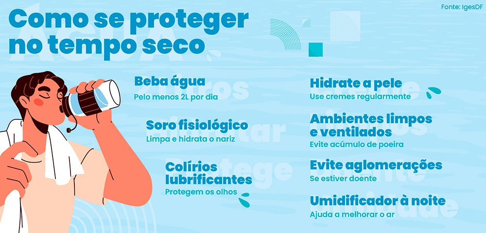 O médico otorrinolaringologista do Instituto de Gestão Estratégica de Saúde do Distrito Federal (IgesDF), João Henrique Zanotelli dos Santos, explica que o clima seco afeta diretamente o sistema respiratório do nariz aos pulmões, aumentando a sensibilidade a bactérias e poluentes. “A baixa umidade resseca a mucosa nasal, altera a qualidade do muco e compromete a filtragem do ar. Isso favorece infecções e crises respiratórias”, alerta.