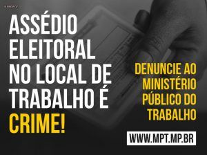 O assédio eleitoral é crime tipificado em lei no Brasil, que assegura de forma constitucional o voto secreto, pessoal, intransferível e livre. Esse tipo de coação é mais comum de ser praticado por empresas ou patrões contra seus empregados, mas também pode envolver situações em que um servidor público tenta se valer da sua autoridade para influenciar o voto de algum subordinado. Caso essa prática esteja acontecendo em seu trabalho, é possível fazer uma denúncia ao MPT, por meio do aplicativo MPT Ouvidoria.