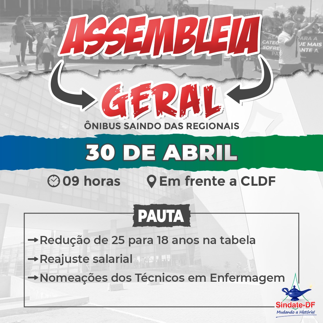 O Sindicato dos Auxiliares e Técnicos em Enfermagem do Distrito Federal (Sindate-DF) realiza na próxima terça-feira (30), às 09h, uma Assembleia Geral para debater pautas importantes da categoria como a reestruturação da carreira e a nomeação dos técnicos em enfermagem.