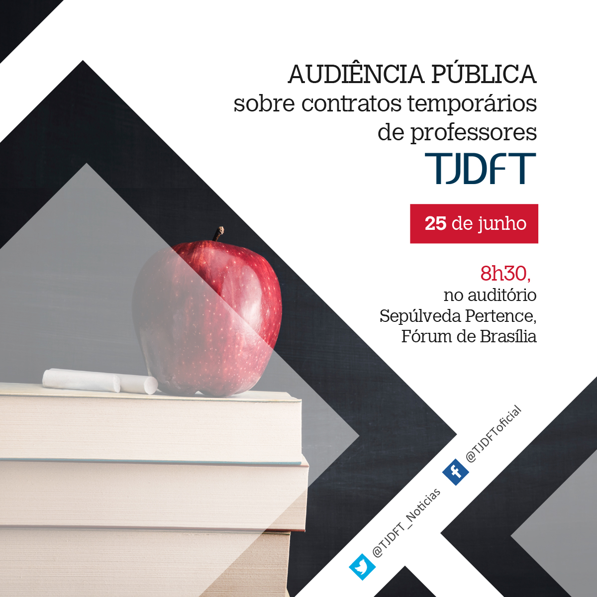 O TJDFT realiza, no dia 25/6, audiência pública sobre a validade jurídica dos contratos temporários de professores da rede pública de ensino do Distrito Federal, com base nas carências remanescentes para a formação de novas turmas e no afastamento de servidor permanente para ocupar cargo comissionado de diretor ou vice-diretor. A audiência, que foi convocada pela Turma de Uniformização de Jurisprudência do Tribunal, acontecerá às 8h30, no auditório Ministro Sepúlveda Pertence, localizado no térreo do Bloco A do Fórum de Brasília.