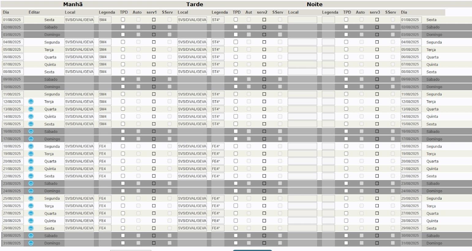 Escala de serviço dos AVAS referente ao mês de agosto de 2025. – Fonte: Cedido ao PDNews