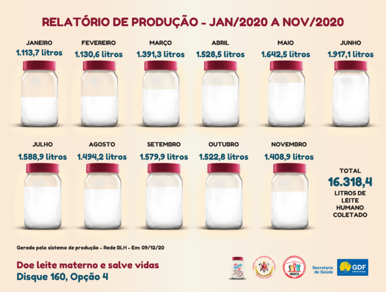“Nosso estoque nos Bancos de Leite Humano está 1% maior comparado a novembro de 2019. Porém, a queda nas doações nos preocupa muito porque independente da época do ano, sempre há bebês internados que precisam de leite materno para se alimentarem e se recuperarem”, explica a coordenadora das Políticas de Aleitamento Materno e Banco de Leite Humano do DF, Miriam Santos.
