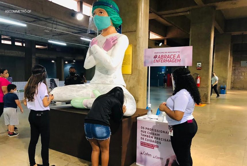 A intenção da campanha é que a população demonstre seu apoio ao esforço dos profissionais de enfermagem na pandemia, assinando a boneca de gesso, que será enviada depois à Câmara dos Deputados. Quem não puder assinar, pode se manifestar pelas redes sociais tirando uma foto, fazendo o sinal do abraço e marcar com a tag #abraceaenfermagem, e também as redes sociais do Metrô (@metrodfoficial)