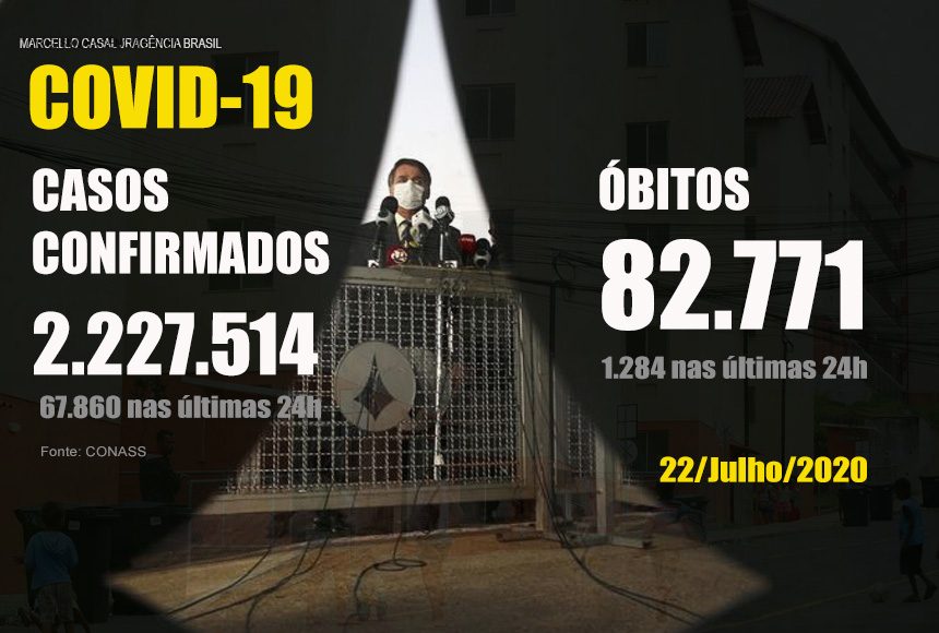 Dados do Conselho Nacional dos Secretários de Saúde (CONASS) apontam, nesta quarta-feira (22/Jul), um total de 67.860 novos casos de coronavírus e 1.284 mortes nas últimas 24 horas. Números esses, que consolidam dados repassados pelas secretarias estaduais de saúde. Ao todo, o país soma 2,2 milhões de registros, de pessoas contaminadas pelo vírus e um total de 82,7 mil óbitos.