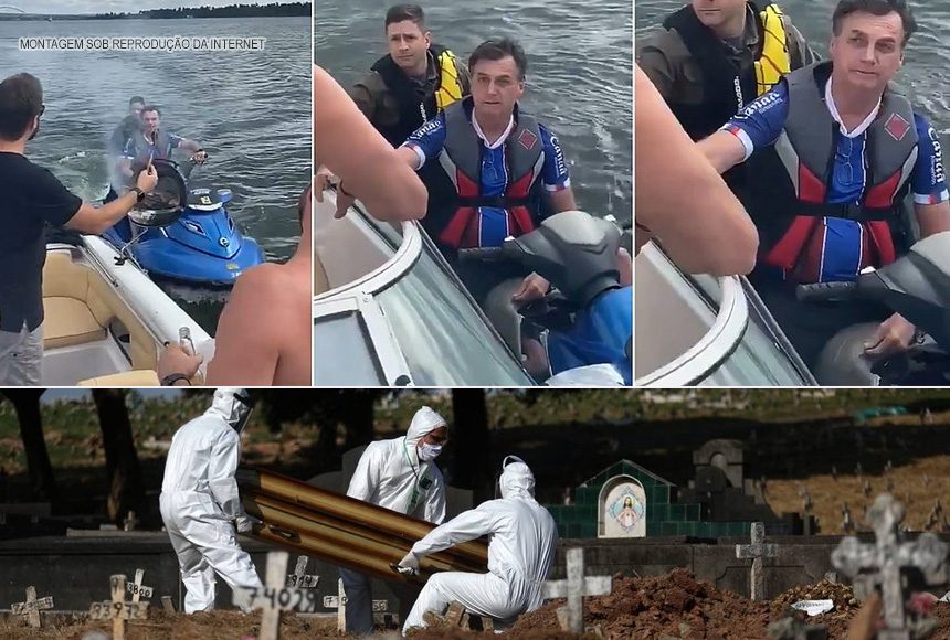 No dia em que país ultrapassou os 10 mil óbitos por covid-19, após desistir de realizar churrasco, o presidente da República Federativa do Brasil, Jair Bolsonaro, optou por dar volta de jet ski no Lago Paranoá.