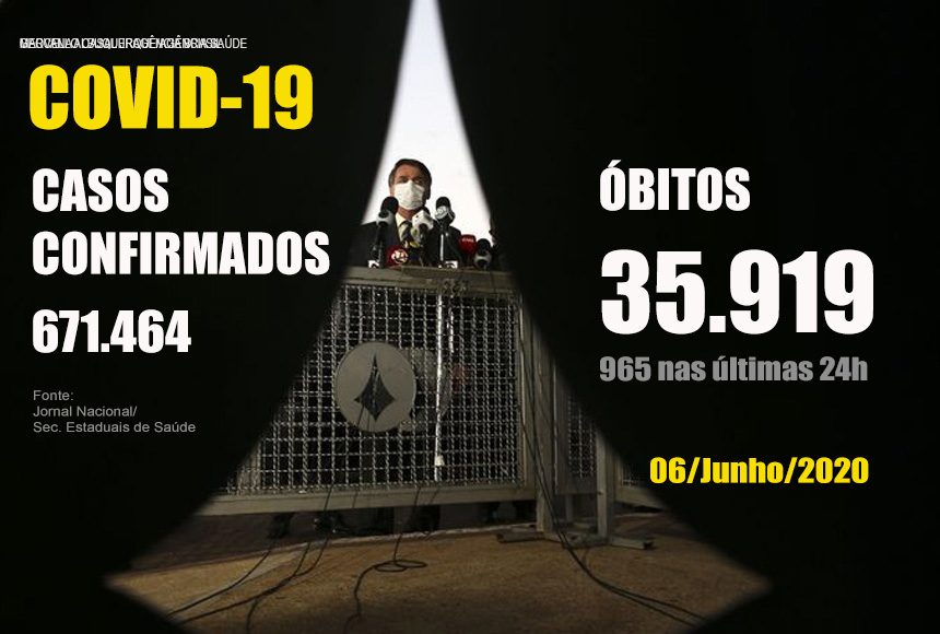 Brasil registra 671.464 casos confirmados e 35.919 óbitos