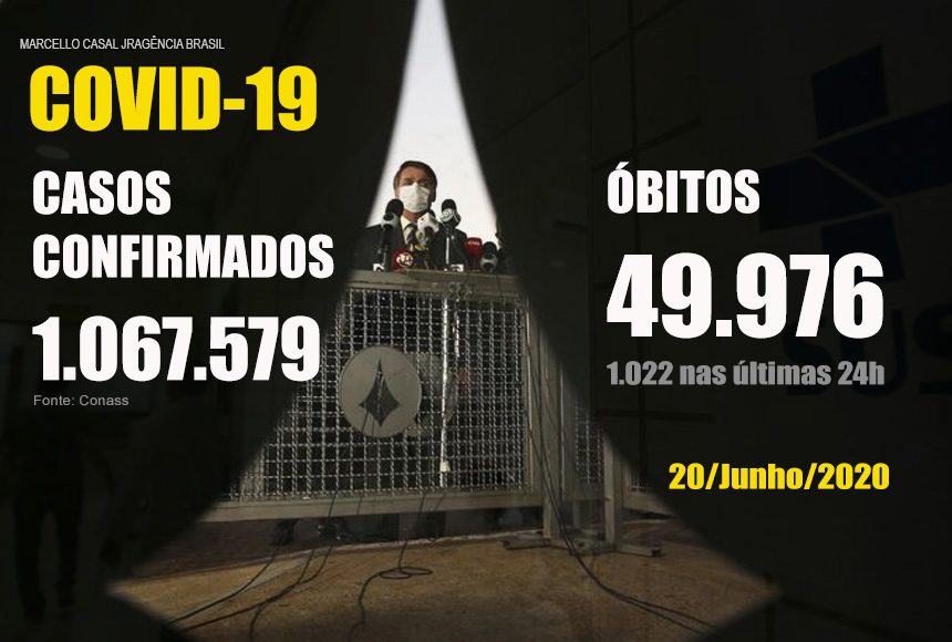 O Brasil teve 1.022 novas mortes por covid-19 registradas nas últimas 24 horas, de acordo com atualização do Ministério da Saúde divulgada hoje (20). Com a soma dos novos números às estatísticas, o país chegou a 49.976 falecimentos em função da pandemia do novo coronavírus.