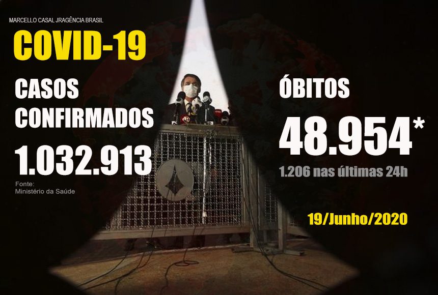 O Brasil bateu a marca de 1 milhão de casos confirmados. Segundo balanço diário do Ministério da Saúde divulgado hoje (19), com 54.771 novos casos, o país chegou a 1,03 milhão de pessoas infectadas. O número marca um aumento de 5,5% em relação a ontem, quando o ministério contabilizava 978.142 pacientes nesta condição.
