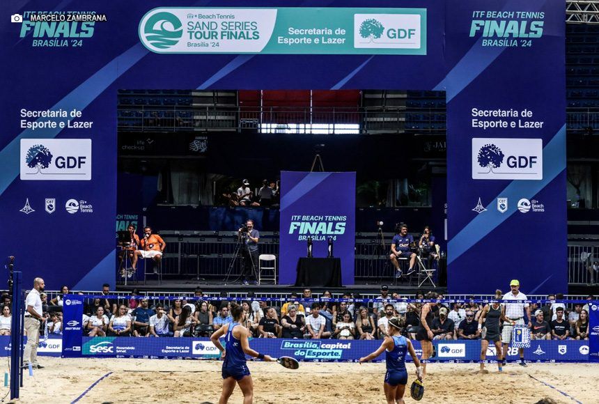 Os campeões da primeira edição do ITF Beach Tennis Finals serão conhecidos neste sábado (7), na Arena BRB Nilson Nelson, em Brasília. No feminino, a partir das 18h, Rafaella Miiller e a venezuelana Patty Diaz enfrentam as italianas Giulia Gasparri e Ninny Valentini. A seguir, não antes das 20h, o francês Nicolas Gianotti e o italiano Mattia Spoto e Leonardo Branco e Allan Oliveira disputam o título masculino. O torneio inédito distribui uma premiação total de mais de US$ 100 mil, a maior da modalidade. Os jogos terão transmissão ao vivo pela ESPN 4 e pelo canal PlayBT no YouTube.
