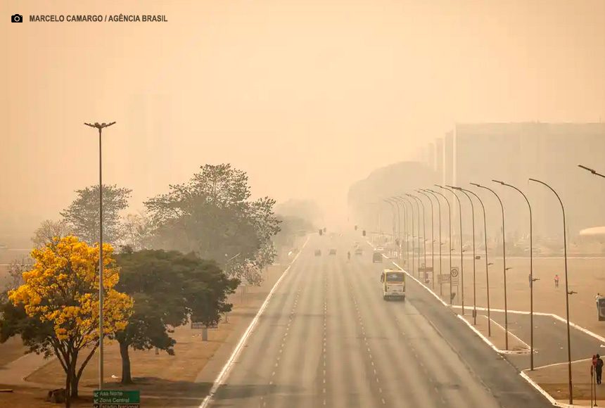 O cenário visto na capital federal é uma junção do acúmulo de fumaça produzida pelas queimadas no estado de São Paulo e a seca que, tradicionalmente, ocorre na região do Cerrado nesta época do ano. Em Brasília, não chove há mais de 120 dias.