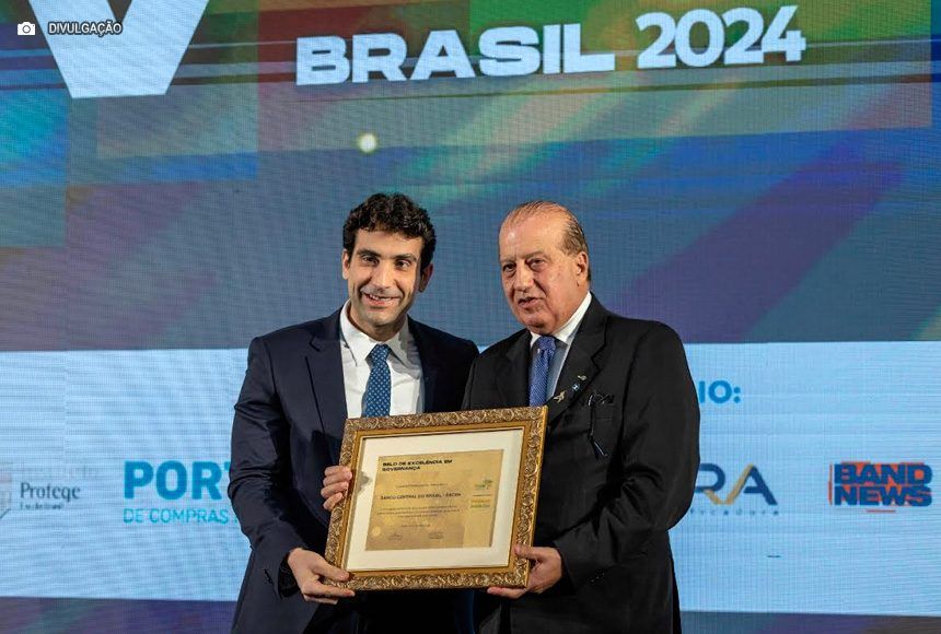 O Banco Central do Brasil foi a instituição contemplada com o Selo de Excelência em Governança. O Ministro Augusto Nardes realizou a entrega da honraria, que reconhece instituições que se destacam como referências em boas práticas de governança. O selo é reservado exclusivamente àquelas que atingiram um patamar de excelência que as coloca como “hors concours”, acima de avaliações convencionais, destacando-se como modelos a serem seguidos no cenário nacional.