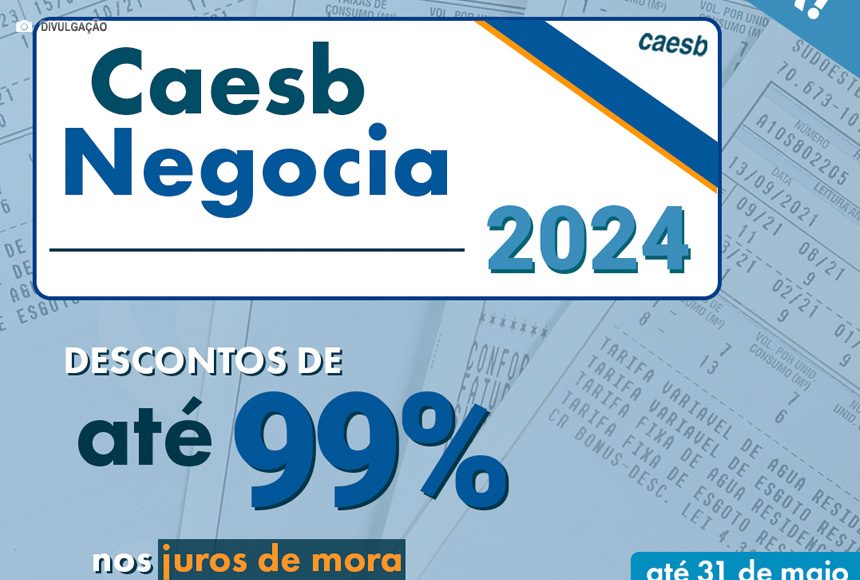 Os clientes da Companhia de Saneamento Ambiental do Distrito Federal têm até o dia 31 de maio para aderir ao Programa Caesb Negocia, que oferece condições especiais aos usuários inadimplentes que queiram quitar contas de água e esgoto vencidas até 15 de janeiro de 2024.