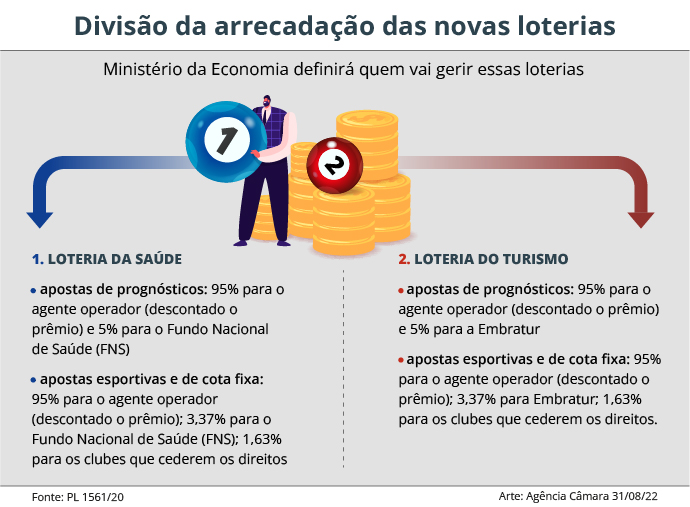 Porém, criado sob a tutela de serem as loterias da saúde e do turismo, o PL prevê a destinação de 95% das arrecadações para o agente operador, descontado o custeio da premiação, e, apenas 5% para o Fundo Nacional de Saúde (FNS). Distribuição essa, questionada pela deputada federal, Érika Kokay (PT-DF), que também questionou pontos do texto aprovado pela Câmara.