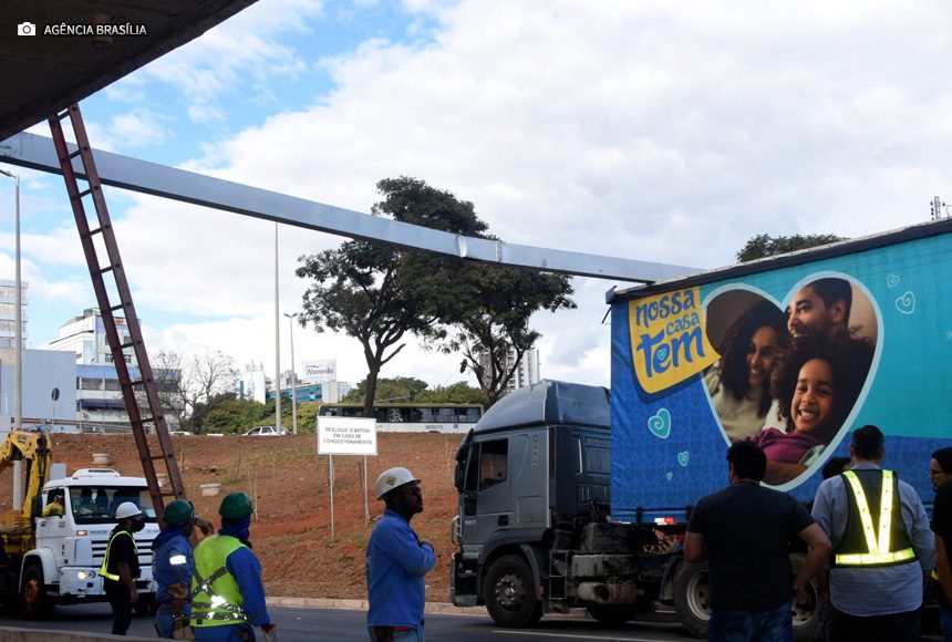 Sempre que há um incidente como esse, os órgão de trânsito (Detran, DER e PMDF) são imediatamente acionados para isolar o local. O protocolo de segurança também prevê o fechamento das três faixas para deslocamento do caminhão e retirada do pórtico atingido.