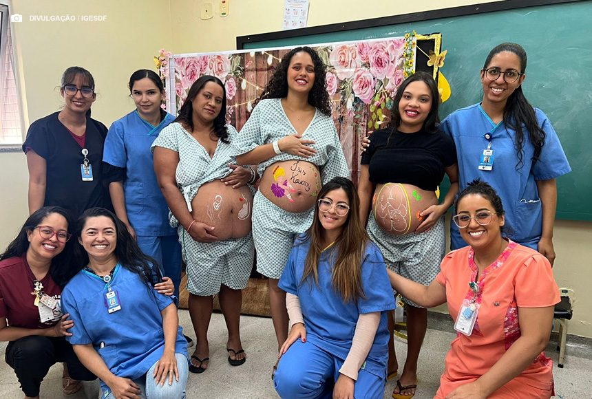 Para fechar as ações do Agosto Dourado, as gestantes de alto risco internadas na Maternidade do Hospital Regional de Santa Maria (HRSM) participaram de um momento de conscientização e alusão à campanha dedicada a tratar sobre a importância do aleitamento materno. Houve pintura de barriga, maquiagem, sessão de fotos e entrega de brindes para todas elas. A ação, na última sexta-feira (30), foi promovida pela equipe do Banco de Leite Humano (BLH) do HRSM em conjunto com a equipe multidisciplinar.