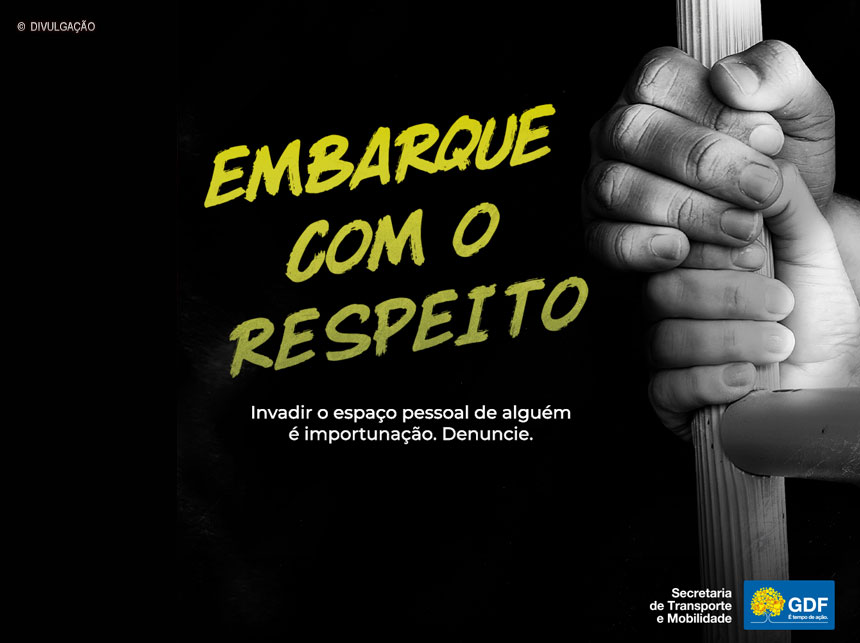 Pelo segundo ano consecutivo, a Secretaria de Transporte e Mobilidade (Semob) realiza campanha de combate à importunação sexual dentro do transporte público coletivo do DF. Nesta quinta-feira (2), as peças da campanha começaram a ser veiculadas nas redes sociais da pasta – Instagram, Facebook e Twitter –, nas TVs dos ônibus e no sistema de comunicação visual da Rodoviária do Plano Piloto.