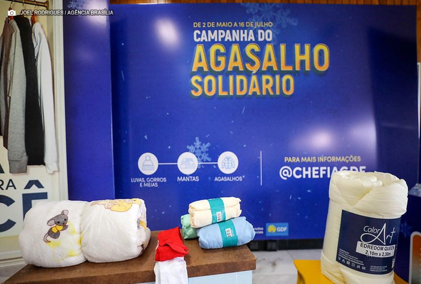 Ainda é tempo de contribuir com a Campanha do Agasalho Solidário, idealizada pela Chefia-Executiva de Políticas Sociais do GDF. As doações podem ser feitas até o dia 17, e são aceitos diversos itens capazes de esquentar a população no período mais frio do ano, como mantas, cobertores, agasalhos, jaquetas, cachecóis, meias e toucas.