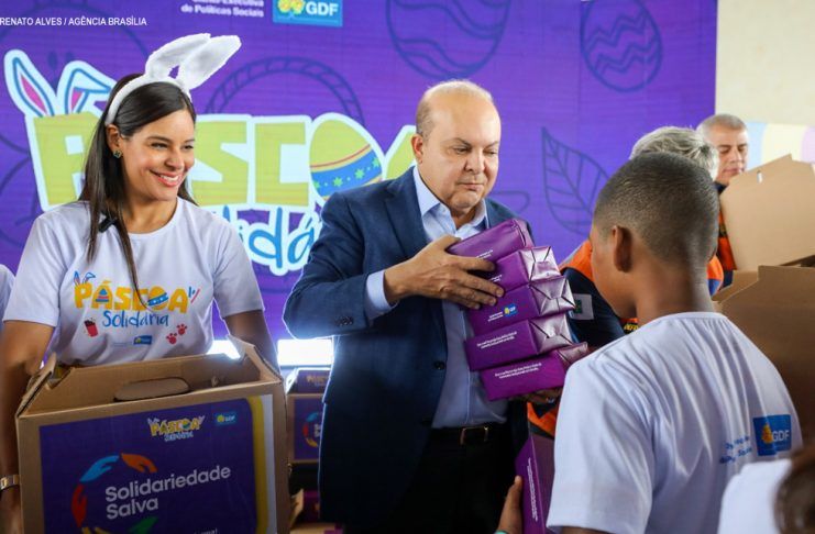 A campanha Páscoa Solidária está de volta. Promovida pela Chefia-Executiva de Políticas Sociais do Governo do Distrito Federal (GDF), a ação resgata os significados do período pascal por meio de doações e atividades recreativas para beneficiar crianças em situação de vulnerabilidade social. A terceira edição foi lançada nesta quinta-feira (10), durante evento no Centro Olímpico e Paralímpico (COP) Parque da Vaquejada, em Ceilândia, com a presença do governador Ibaneis Rocha e da primeira-dama Mayara Noronha Rocha.