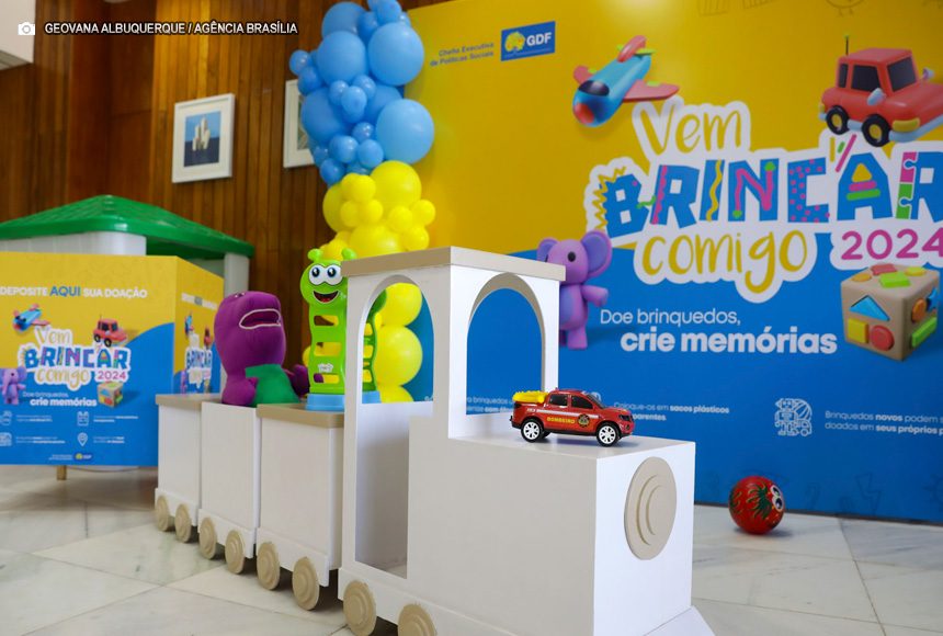 Idealizada pela primeira-dama do Distrito Federal, Mayara Noronha Rocha, e coordenada pela Chefia-Executiva de Políticas Sociais, a campanha Vem Brincar Comigo está na quinta edição e faz parte do calendário oficial brasiliense. A iniciativa consiste na arrecadação de brinquedos junto à população e à sociedade civil para serem distribuídos em eventos com apoio do GDF, além da promoção de experiências inesquecíveis aos pequenos cidadãos, como espetáculos teatrais e parques de diversões.