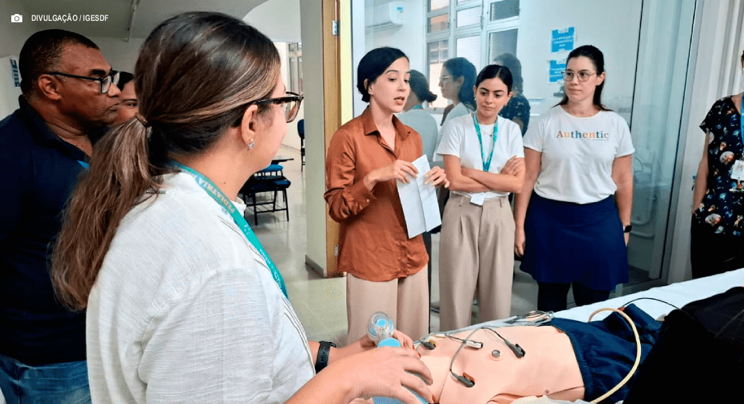 Após as apresentações teóricas, os profissionais participaram de simulações práticas de cenários reais do pronto-socorro. A pediatra Blenda Cunha, que acompanhou a atividade, validou a pertinência do treinamento para a rotina da unidade, que atende pacientes de Brasília e do Entorno Sul.