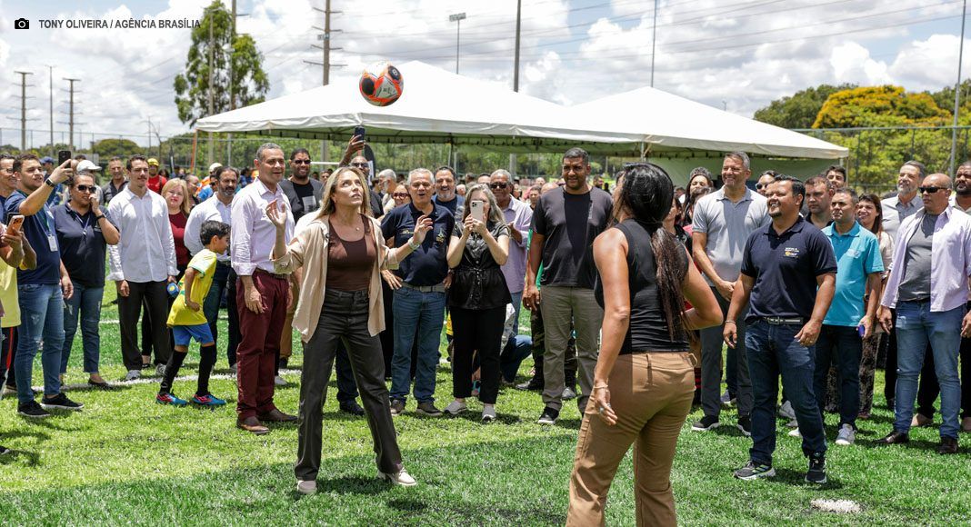 A governadora do DF, em exercício, Celina Leão, entregou um novo campo de grama sintética no Taguaparque, nesta quinta-feira (15). O equipamento público recebeu aporte de R$ 1,8 milhão para ampliar o acesso da população à prática esportiva. A estrutura visa atender projetos sociais, escolinhas de futebol e moradores das imediações com foco na inclusão e na promoção da saúde.