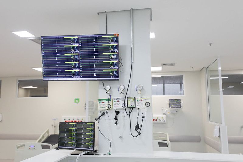 “Essa UTI está completamente nova, com o que há de mais moderno hoje na área da saúde. Aqui temos o telemonitoramento, que permite acompanhar, em tempo real, todos os leitos ao mesmo tempo, sem a necessidade de deslocamento físico. Qualquer alteração sensível já é sinalizada no sistema”, destacou Celina Leão.