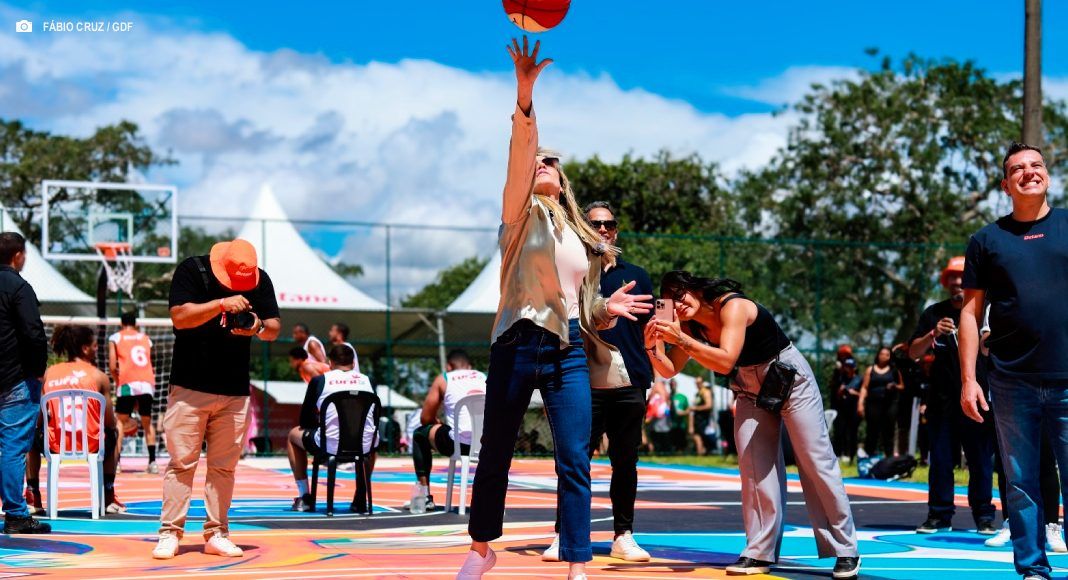 A governadora do DF, Celina Leão (Progressistas) inaugurou no sábado (11/Abr) duas quadras poliesportivas revitalizadas no Parque da Cidade Sarah Kubitschek, fruto de uma parceria com a empresa Betano. O evento de entrega, que visa fortalecer o uso de espaços públicos e incentivar a prática esportiva na capital, contou com torneios, apresentações culturais e serviços de saúde para a comunidade.